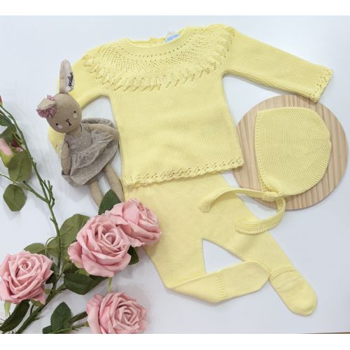 Completino in filo di cotone con cuffia. Colore: Limonata.