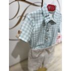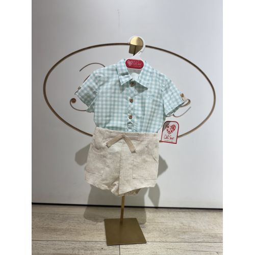 Brand: Del Sur. Tema: Modena . completio 2 pezzi: camicia a quadri turchese e bianco e dettagli sulle maniche in lino e pantaloncino a culotte beige.
