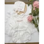 Brand: Marlú. Completino in cotone foderato e Rossellini sul petto ricamato a mano e culotte. Colore: Vaniglia/Rosa. 100% cotone. Made in Italy.