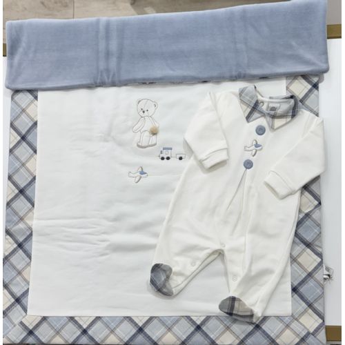 Brand: Marlú. Coordinato uscita clinica. Comprende: Tutina in caldo cotone con colletto e piedini a quadri e coperta in caldo cotone e ciniglia.