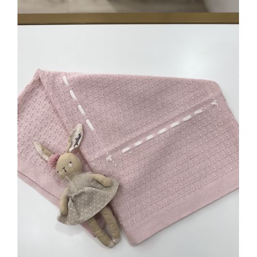 Brand: Marlú. Coperta Rosa cipria in filo di cotone con nodo d'amore bianco. 100% cotone. Made in Italy.
