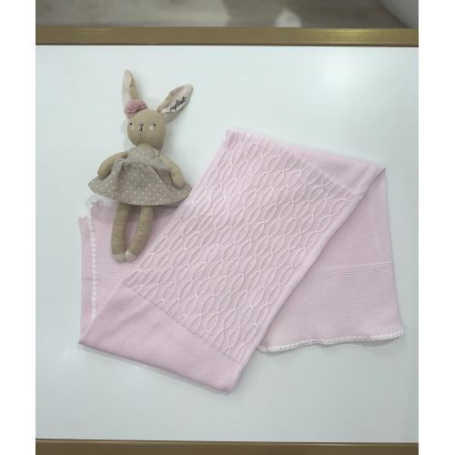 Coperta in filo di cotone colore Rosa con tutto il bordino ricamato bianco centro trapuntato. 100% cotone.