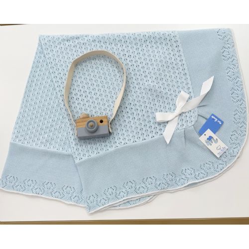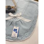 Brand: Mac ilusión. Maxi Coperta in filo di cotone bella elaborata con traforatura sia al centro che al bordo con fiocco bianco e bordino bianco. Colore: Serenity.