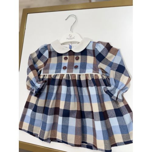 Vestina a quadrettone in quadro color: azzurro/blu/beige/polvere con collo in velluto bianco ! Caldo cotone