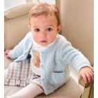 maglia rossa con culotta a fantasia e fiocco laterale con calze neutra