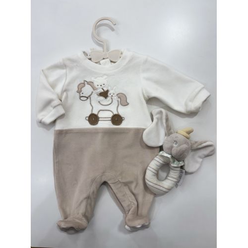 Tutina bicolore bianco e tortora e dondolo. Unisex. Made in Italy.