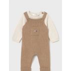Salopette tortora con body in caldo cotone con colletto e bottoni, cardigan polvere . 80% cotone 20% lana