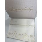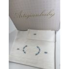 Lenzuola 100% cotone. Misura da carrozzina composto da lenzuola sotto con angoli, lenzuolo sopra con ricamo e fodera per cuscino !