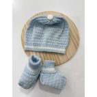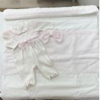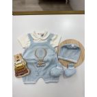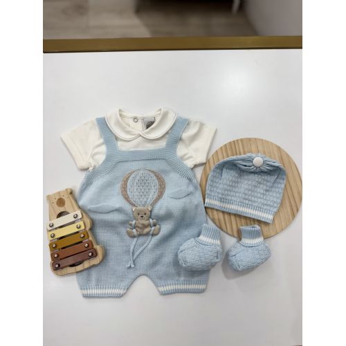 Brand: Marlú. Set nascita a pagliaccetto con mongolfiera e orsetto, cappellino e babbucce coordinate. 100% cotone. Made in Italy.