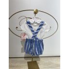 Pagliacetto avion a righe con camicia bianca e bordino del collo ricamato apertura dietro.