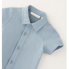 Camicia a manica corta per neonato Minibanda realizzata in lino e cotone. Apertura davanti con bottoni. Modello classico. • Colore VERDE ACQUA-3955: 55%Lino 45% Cotone.
