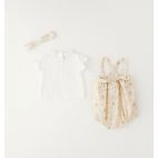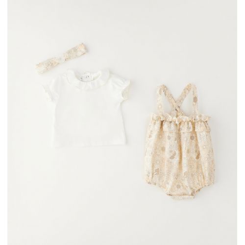 Completo estivo per neonata Minibanda in cotone. La t-shirt è in jersey stretch di cotone con apertura dietro tramite bottoni a pressione.