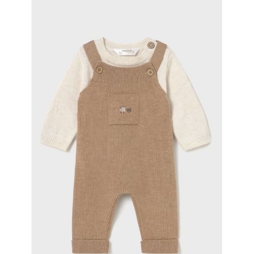 Brand: Mayoral. Completino 2 pezzi. Caldo cotone. 100% cotone . Comprende: Maglioncino beige e salopette marroncina. Made in china