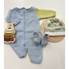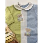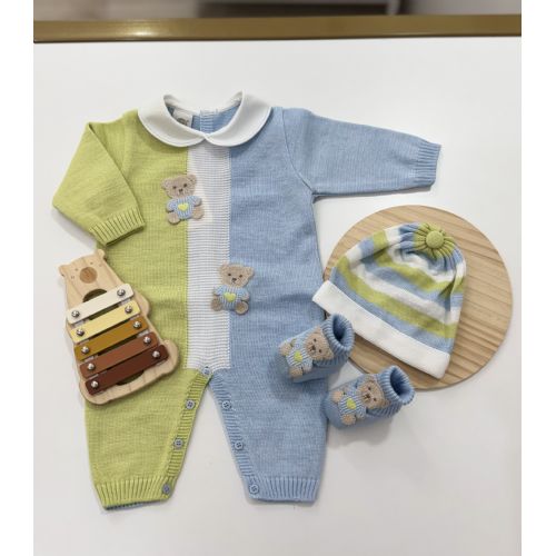 Brand: Marlú. Set nascita Tutina tricolore con orsetti 3D. Colore: Cielo/ polvere/ Lime. 100% cotone. Made in Italy.