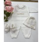 Brand: Marlú. Set nascita in filo di cotone tutina con Roselline ricamate. Cappello e babbucce coordinate. Colore: Bianco/Rosa Pesco/Lime. 100% cotone. Made in Italy.