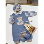 Brand: Marlú. Tutina con quadrettone e orsetto ricamato al centro, cappellino e babbucce coordinata! Col.Ottanio. 100 % lana pettinata. Made in Italia