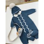 Tutina zaffino con rombi cielo, cappello con pelliccia vera e babbucce. 100% Lana merino. Alta qualità. Made in Italy.
