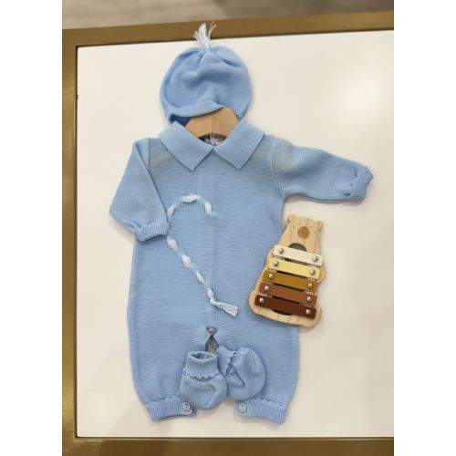 Brand: Pappa & latte. Tutina celestone con mezzo cuore di mamma una tutina pensata per il amore di ogni mamme, l'altra metà la porta la sua copertina, cappellino e babbucce. 100% cotone. Made in Italy.
