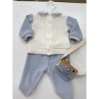 Clinico panna e polvere in ciniglia , maglia bianca in lanetta e ciniglia al centro fascia di orsetto e ghettina polvere, cappello coordinato.