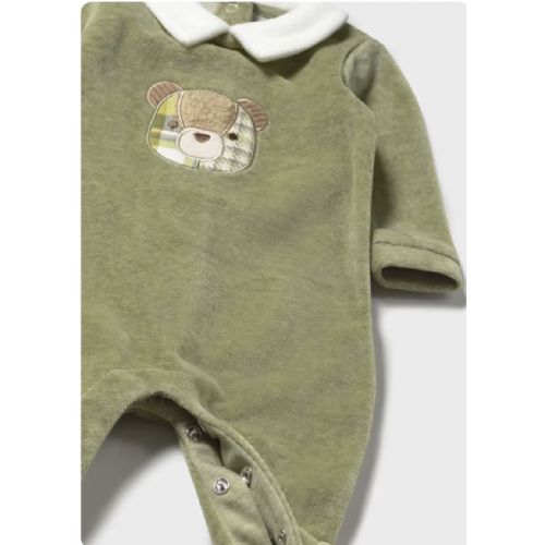 Tutina in ciniglia colore basil vig colletto bianco e orsetto al centro
