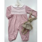 Brand: Minibanda. Tutina di cotone UNISEX con orecchie di orsetto, piedini in mussole con orsetto e taschini. 100% cotone. Made in Portogal.