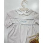 Brand: Jogus fashion. Tutina bianca in cotone con la scritta bebe al centro azzurra. 100% cotone.