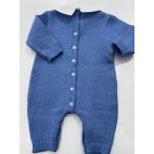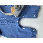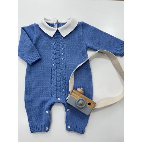 Brand: La sartoria dei piccoli. Tutina in misto lana azzurrone con collo bianco trecce al centro e dettagli bianco. 50% lana 50% acrilico.