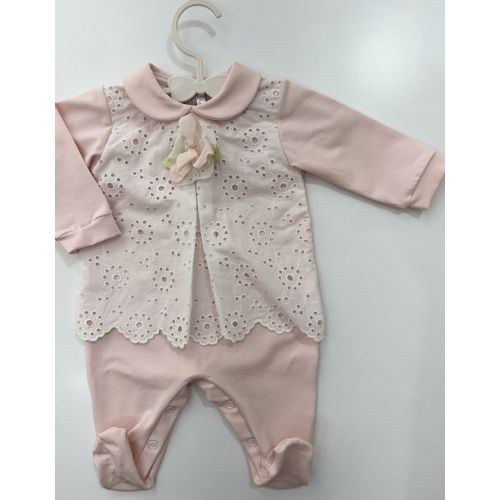 Tutina con pizzo sangallo. Colore: Salmone. 100% cotone. Made in Italy.