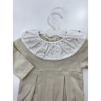 Brand: Jogus fashion. Tutina di cotone tortora con collo bianco ricamato.