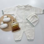 Brand: Marlú. Tutina in filo di cotone Unisex. Tema: mongolfiera. Colore: Vaniglia/ verde salvia. 100% cotone. Made in Italy